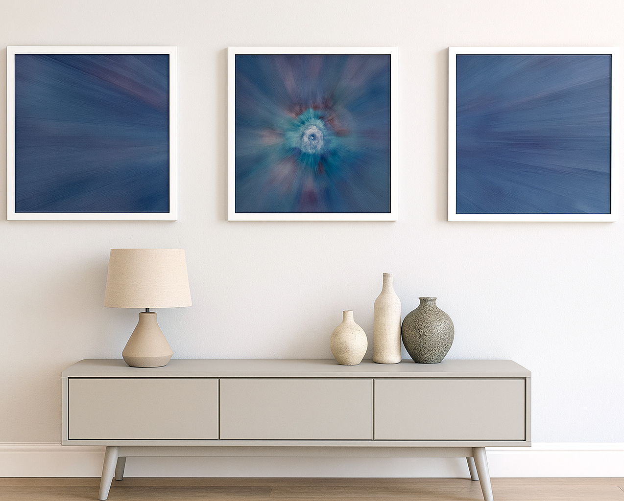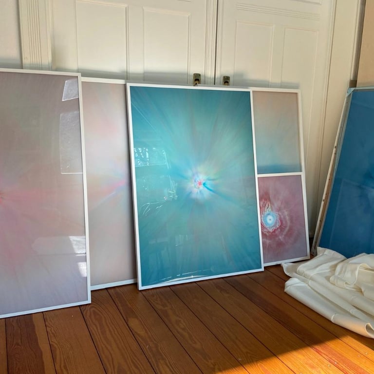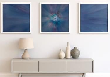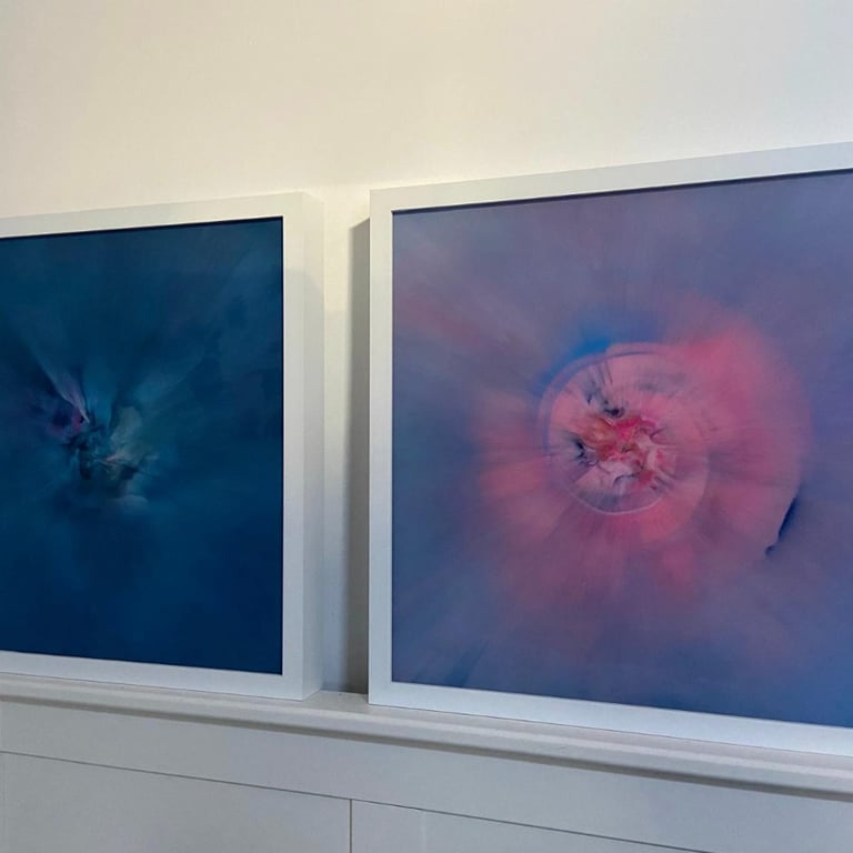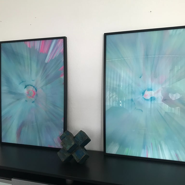 Bei dem vom mir entwickelten "AcrylicSpin" Verfahren, arbeite ich mit Acrylfarben auf, bzw. hinter Acrylglas, so dass eine hochglänzende Oberfläche entsteht, die meinen Bildern eine erstaunliche Tiefenwirkung verleihen.